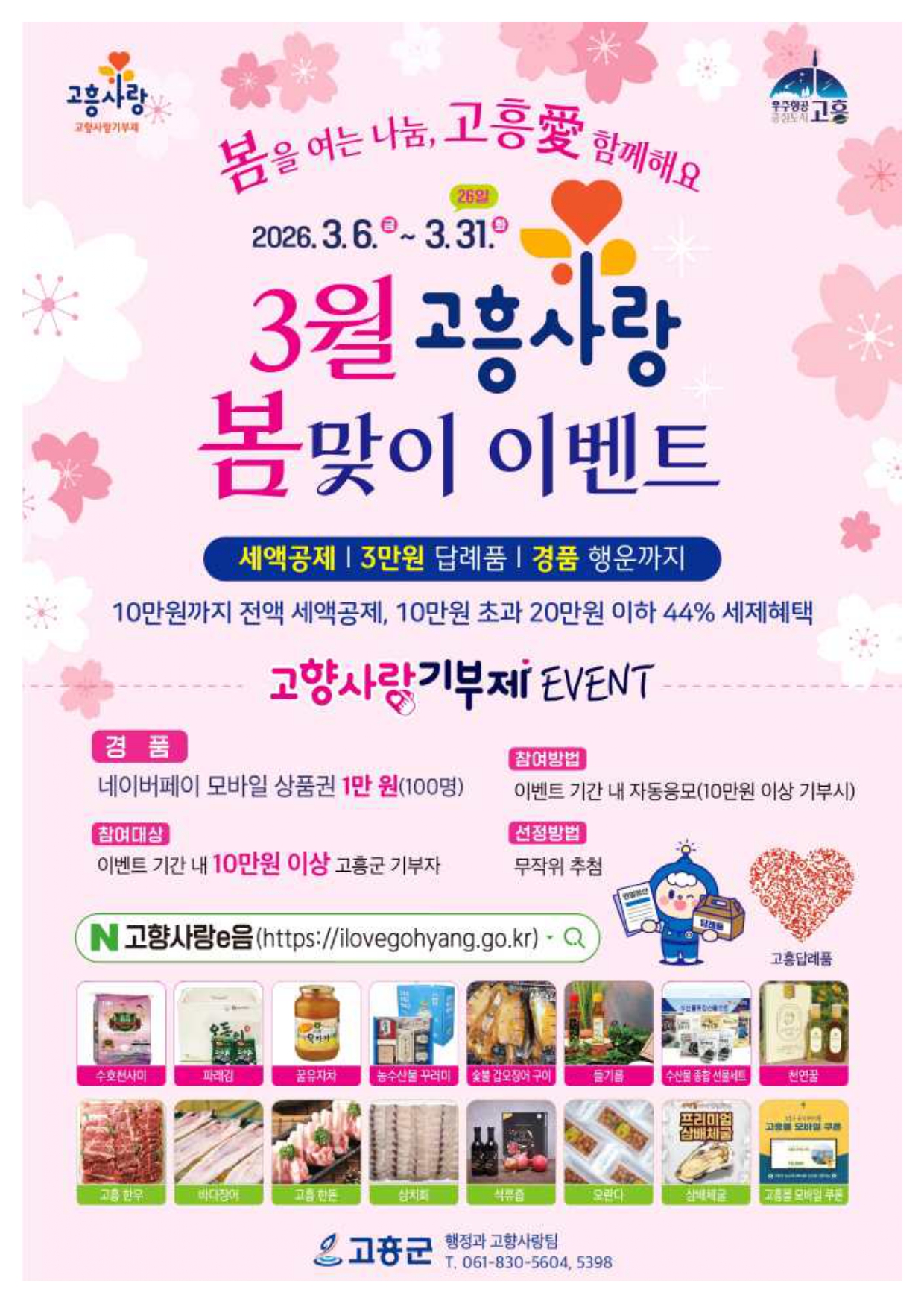 「2026년 고향사랑기부제 봄맞이 기부 참여 이벤트 」